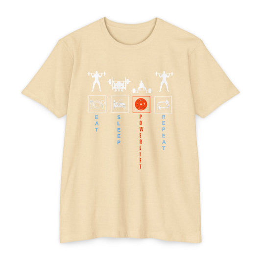 Powerlifting Motivational Unisex Cotton Crew Tee - Eat Sleep Powerlift Repeat